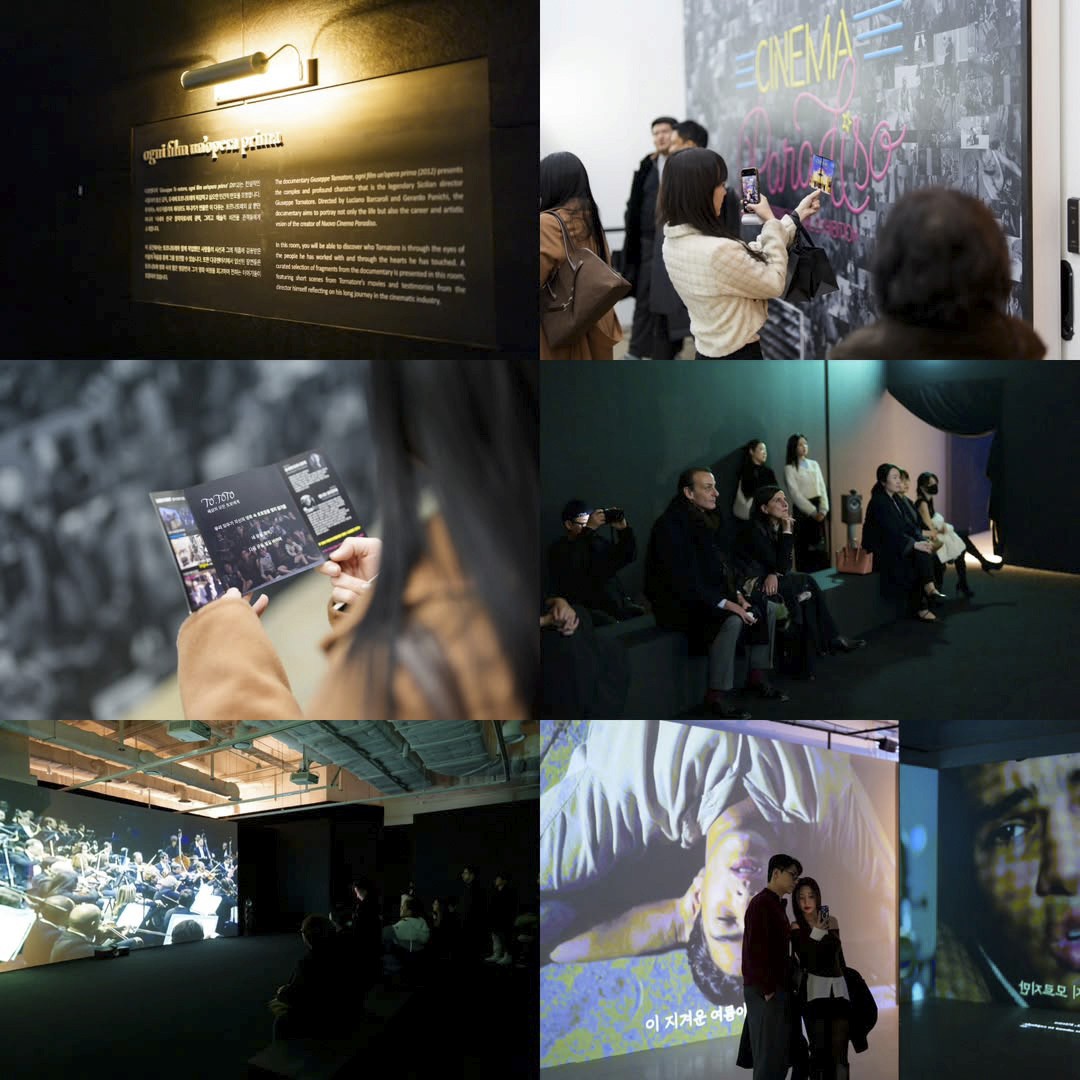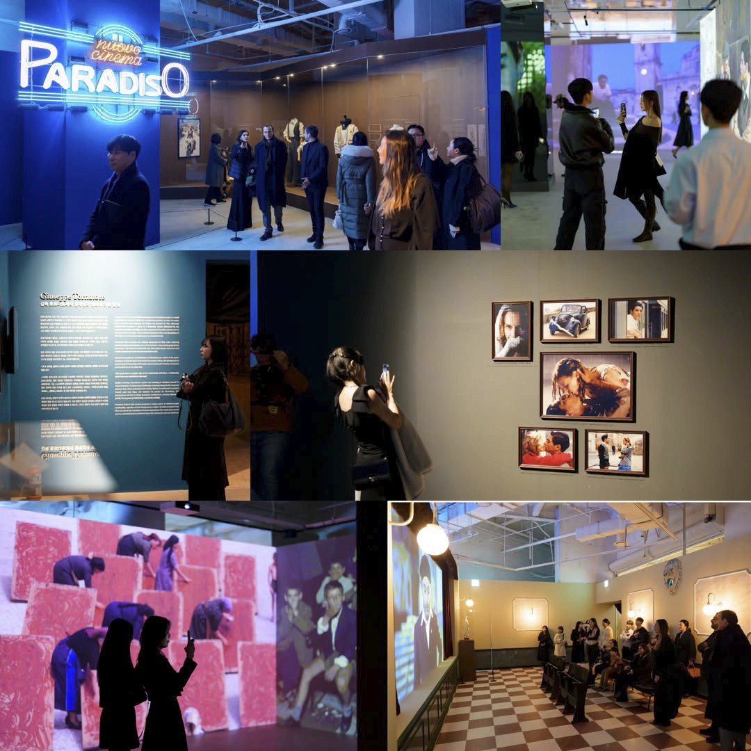 Premiered at Galleria Foret in Seoul, “Cinema Paradiso – Immersive Special Exhibition” was a multi-sensory tribute to the beloved Italian film. Held in Seoul in 2024, the exhibition recreated key scenes from the movie through immersive set design, original props, and atmospheric video installations. Co-produced by Crossmedia Group and Soop International, it invited visitors into a poetic journey through memory, cinema and imagination.