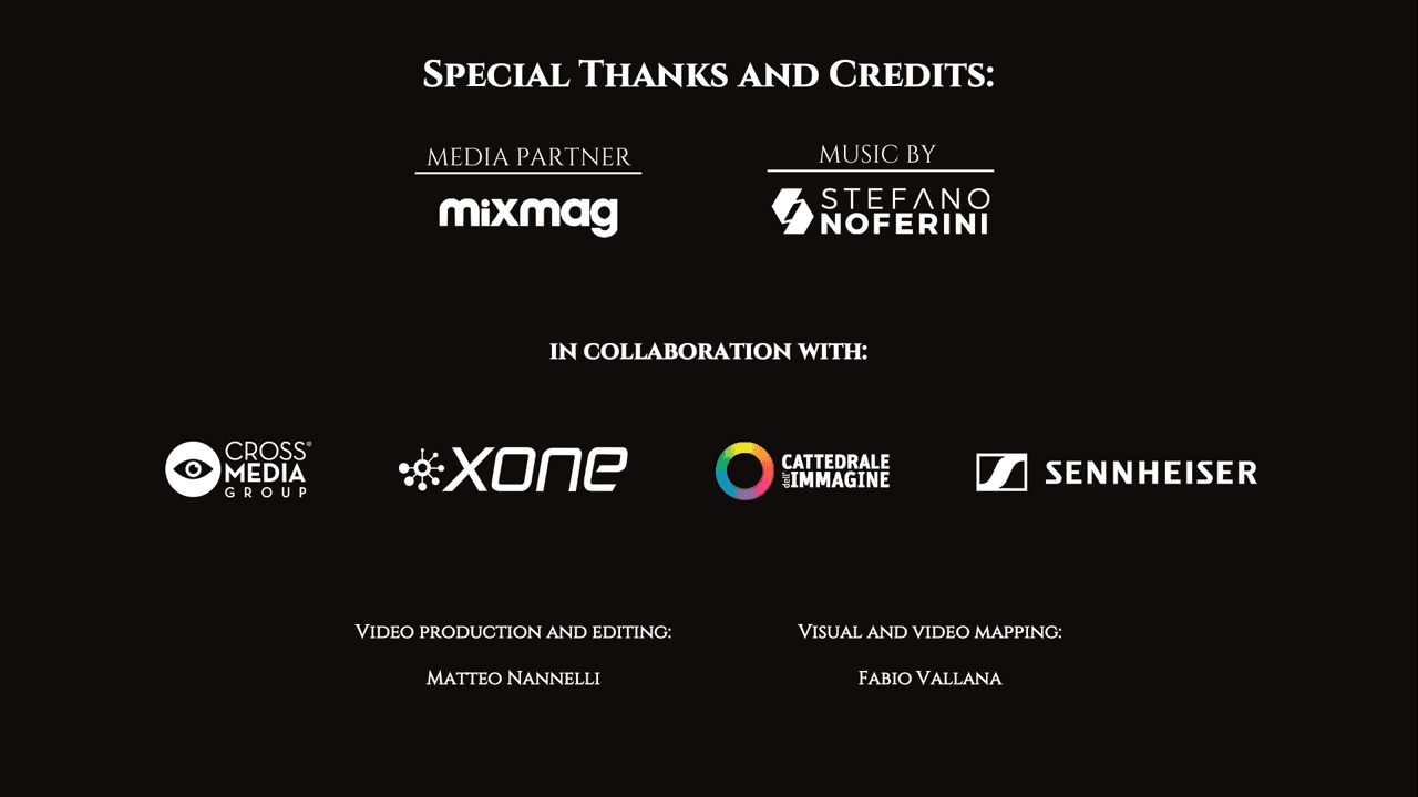 Organized during the pandemic, Stefano Noferini – Digital Art Experience was a unique collaboration blending electronic music, immersive art, and digital technology. The project, presented by internationally acclaimed DJ and producer Stefano Noferini and his label Deeperfect, took place in the Romanesque setting of the Cattedrale dell’Immagine in Florence and was designed as a fully digital experience, streamed online due to Covid restrictions. With production support from Crossmedia Group and project coordination by Ornella Vallana, the initiative transformed the cathedral into a stage for a powerful audiovisual performance. The set featured a musical journey across decades of electronic music by Noferini, synchronized with a curated visual composition based on previous immersive exhibitions. Masterpieces by Van Gogh, Da Vinci, Modigliani, Monet, and Klimt were reinterpreted through projection mapping and VJ-style editing to create a captivating, multi-sensory experience. This digital performance highlighted the power of creativity and resilience, offering an uplifting cultural moment at a time when connection and expression were most needed.